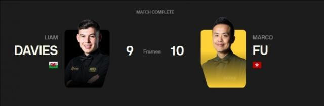 斯诺克世锦赛资格赛112进80轮次,傅家俊10比9利亚姆·戴维斯晋级。全场比赛傅家俊打出三杆破百(102、137、111)和两杆50+(86、66),利亚姆·戴维斯打出一杆破百(123)和六杆50+(62、96、69、63、54、57)第一阶段过后利亚姆·戴维斯5比4领先傅家俊,第二阶段双方战至决胜局,傅家俊以10比9的比分战胜对手晋级。