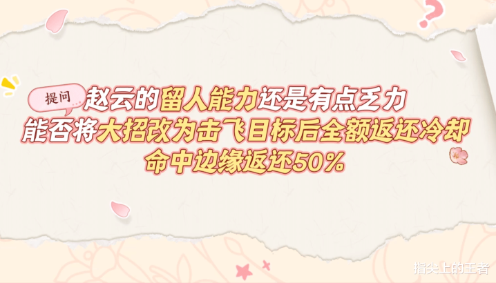 而最终的原因,策划的(的嘴替)回答是“高分段霸体英雄太多,所以赵云很难发挥”,没错,赵云的输出是建立在击飞目标的基础上,如果被霸体等技能规避,伤害肯定是不够的。