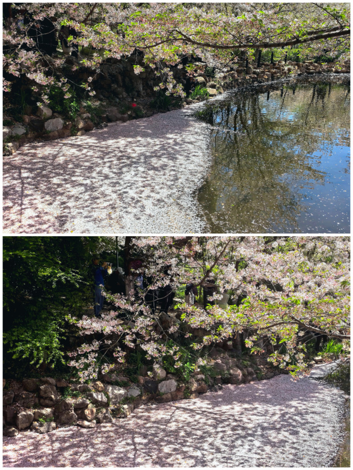 其实赏樱的浪漫,从来不止于枝头盛放的瞬间。落樱池的美,就在于它把樱花的一生,都写进了春日里:从枝头绽放的热烈,到飘落水面的温柔,每一个瞬间,都是春日独有的浪漫。即便花期将尽,这份落樱满池的盛景,依然能治愈所有的疲惫,让人在春日里,收获满心的温柔。