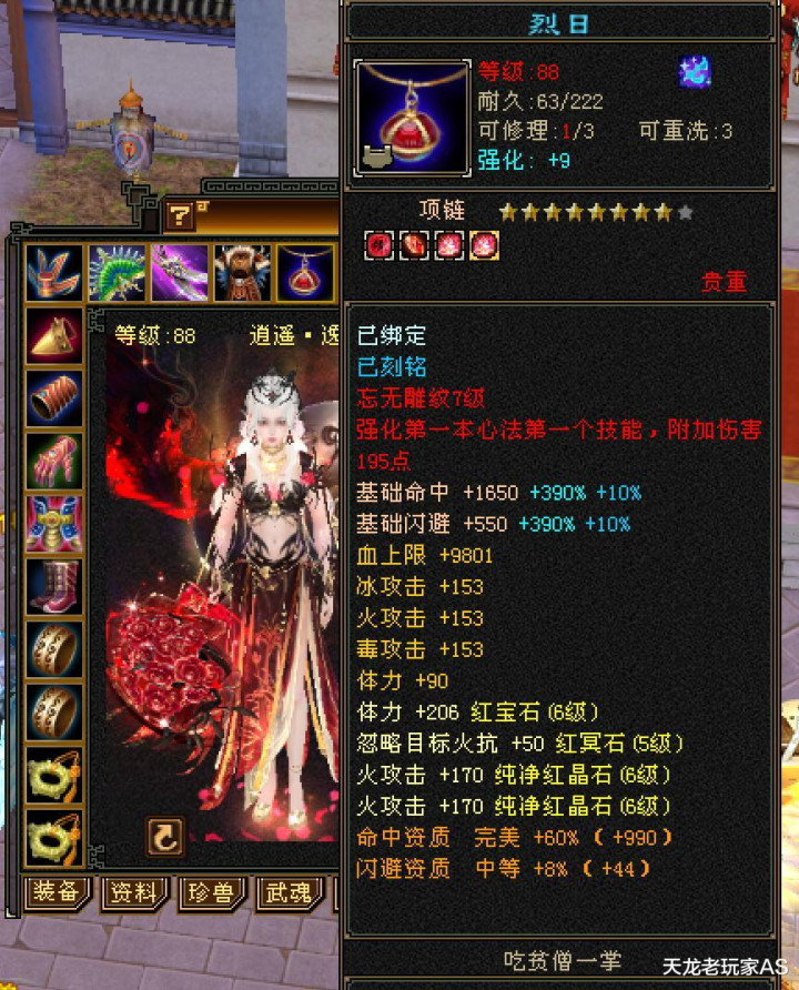 小编在【紫禁之巅】服务器偶遇了一位65混搭的88卡级逍遥,她身上的衣服和项链太有反差感了。